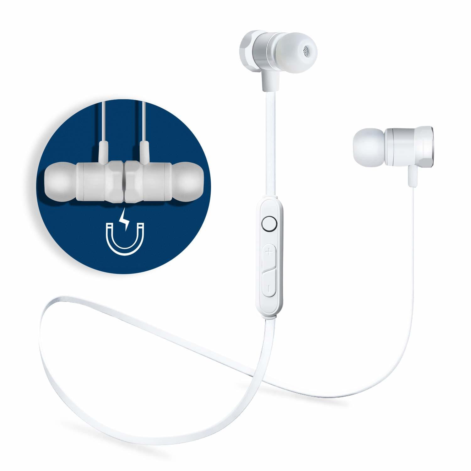 Bluetooth Kopfhörer in Ear, NIERBO Magnetisch Headset Kopfhörer mit Mikrofon Wasserschutzklasse IPX4 Rauschunterdrückung Sportkopfhörer Weiß für iPhone, iPad, Huawei, Samsung, HTC und mehr