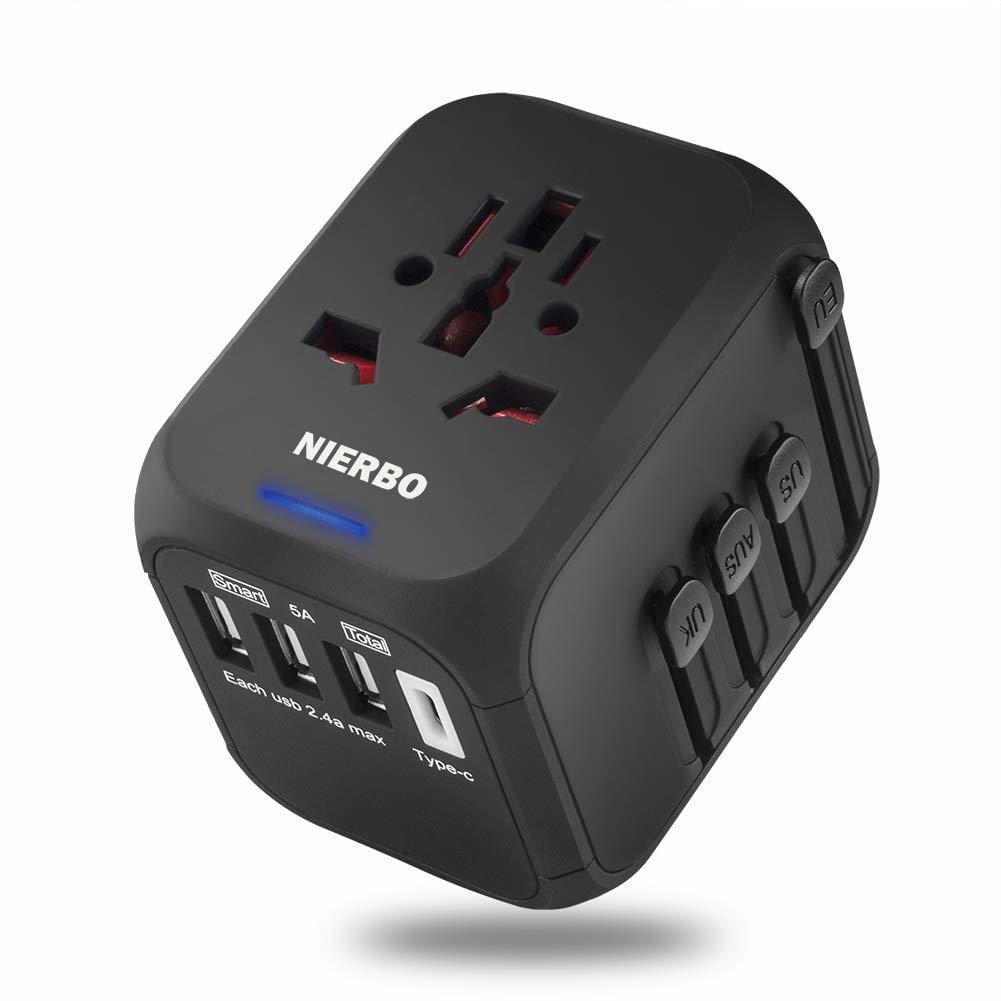 Universal Reiseadapter Weltweit Reisestecker, NIERBO Stromadapter Stecker Weltreise Reisestecker Adapter mit 1 Typ C und 3 5A Smart Power USB für US UK EU AUS CN JP Mehr als 200 Länder (Schwarz)